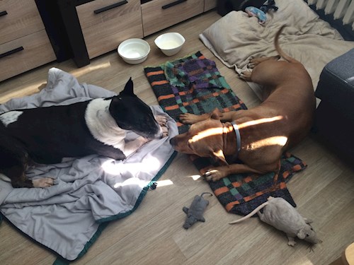 Jessie,Americký stafordšírský bulteriér:Jessie je velice aktivní a přátelská. Nejvíce miluje aportování, lidi a také zvířata.Při každé procházce narazí na nějakého čtyřnohého kamaráda.